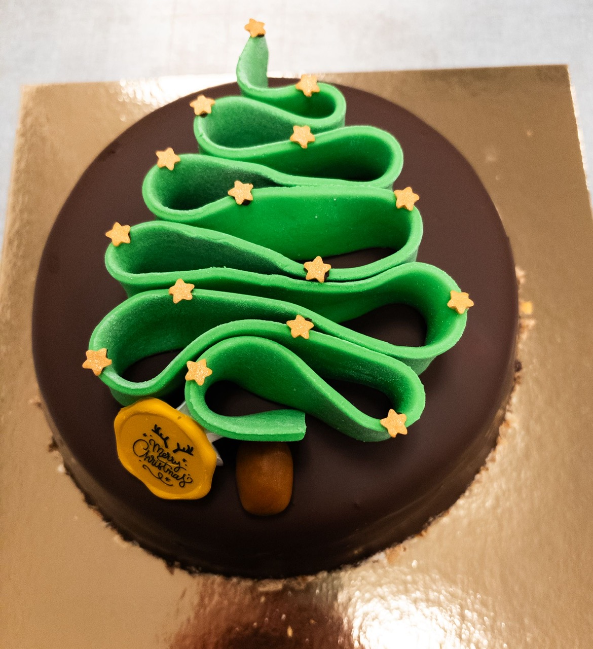 Willekeurige tekst of getal wordt door ons met de hand in schoonschrift in chocolade op een marsepeinen schildje geplaatst. Dit schildje wordt vervolgens op de taart geplaatst. Houdt rekening met beperkte plaats: slechts enkele woorden/getallen/tekens zijn mogelijk.