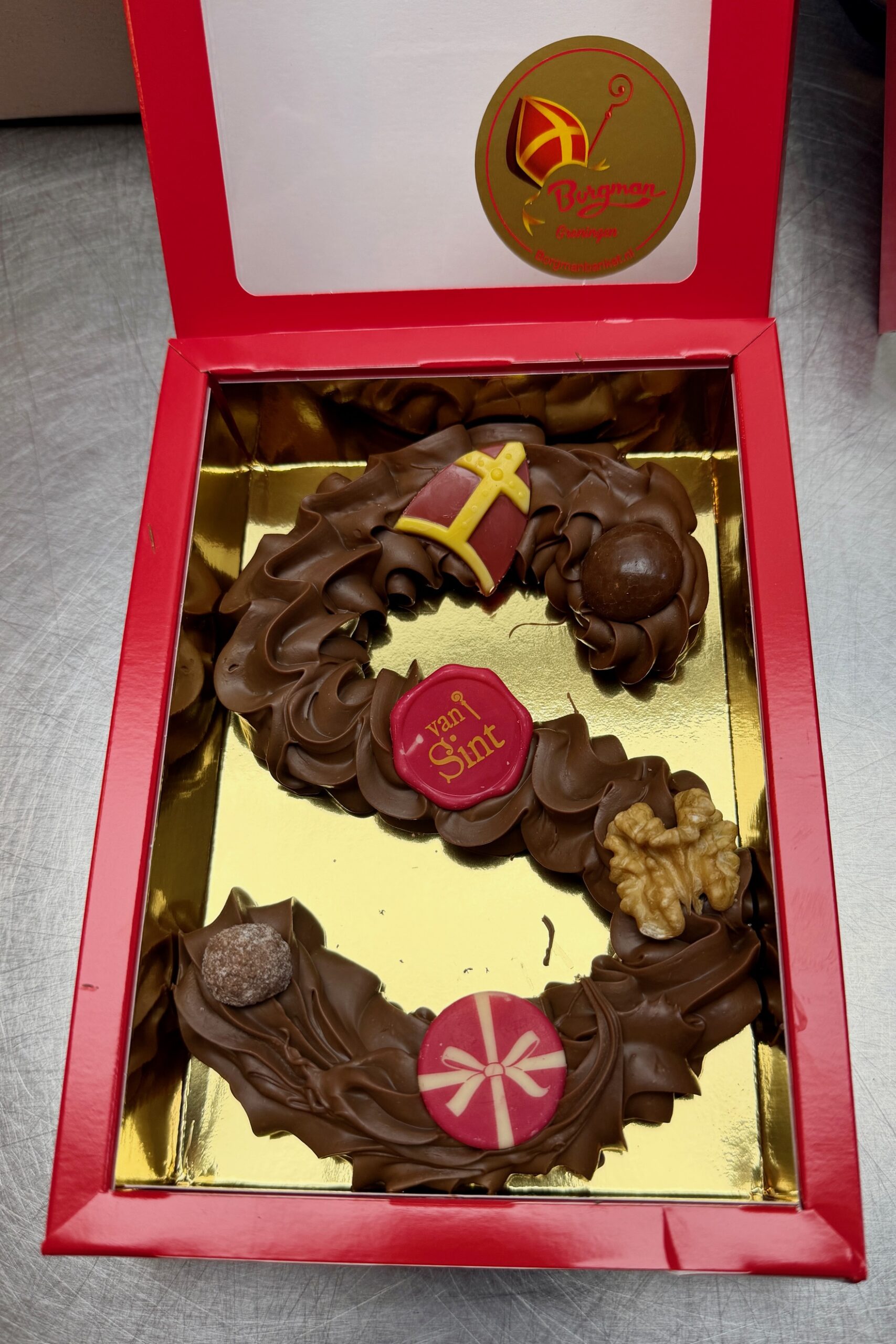 Ambachtelijke chocolade letter die mooi zijn gedecoreerd.