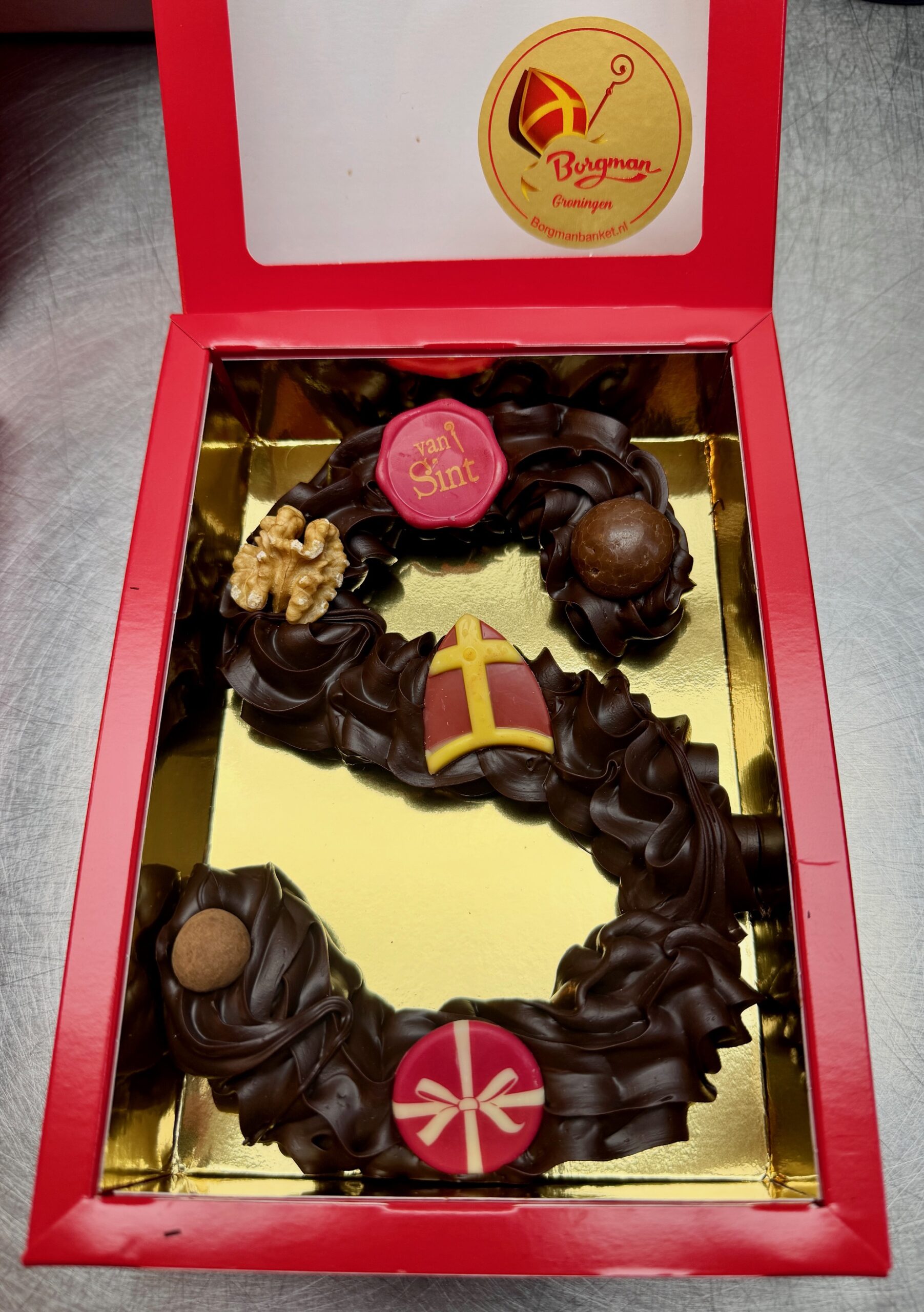 Ambachtelijke chocolade letters die mooi zijn gedecoreerd.
